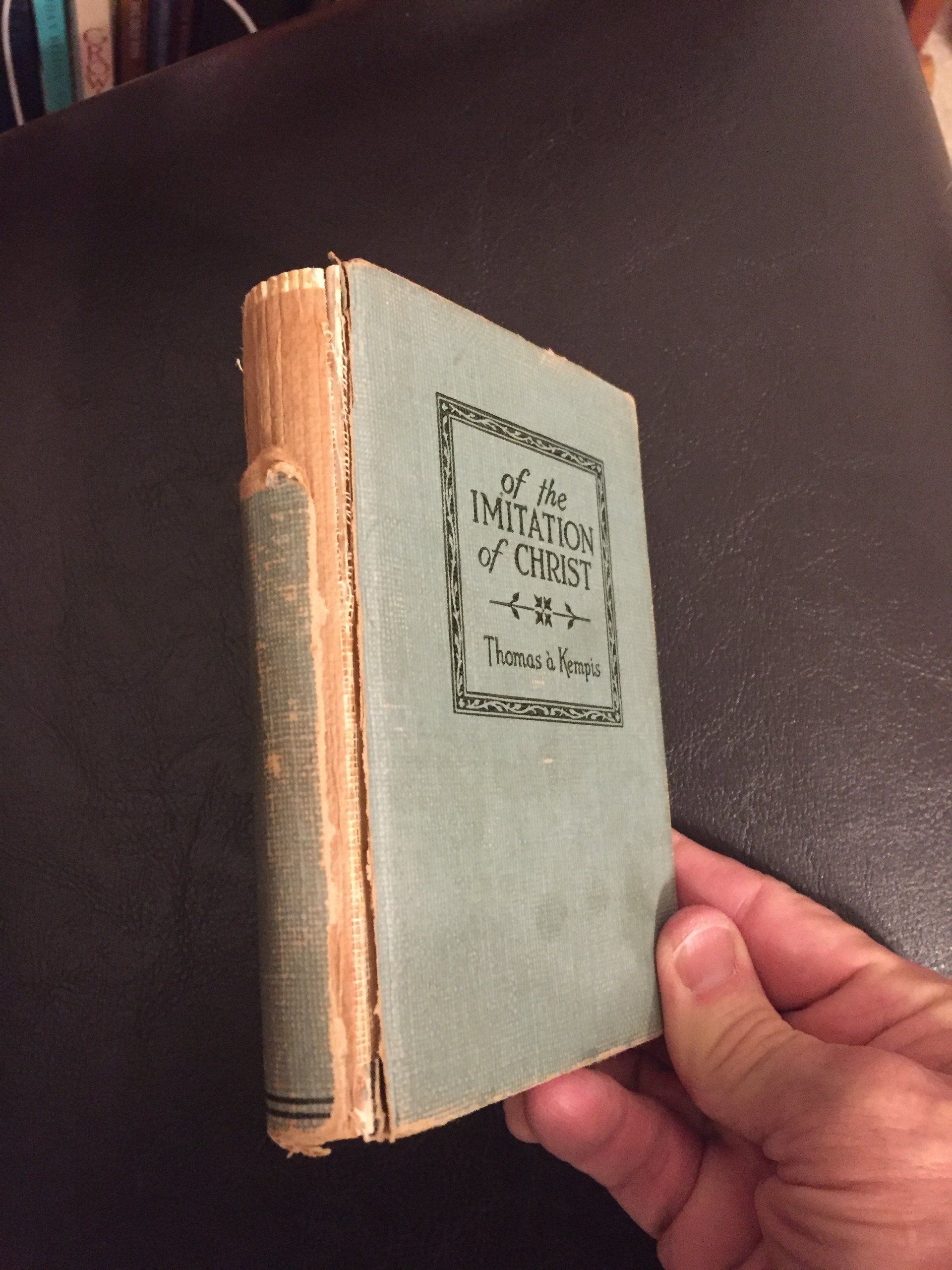 As I was roaming this treasure trove, Bryan happened by. He pointed out a little, beat up copy of The Imitation of Christ